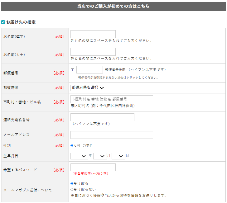お届け先の情報を入力します。