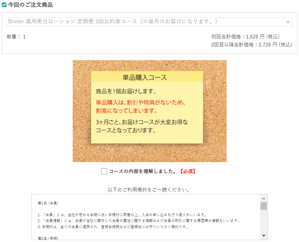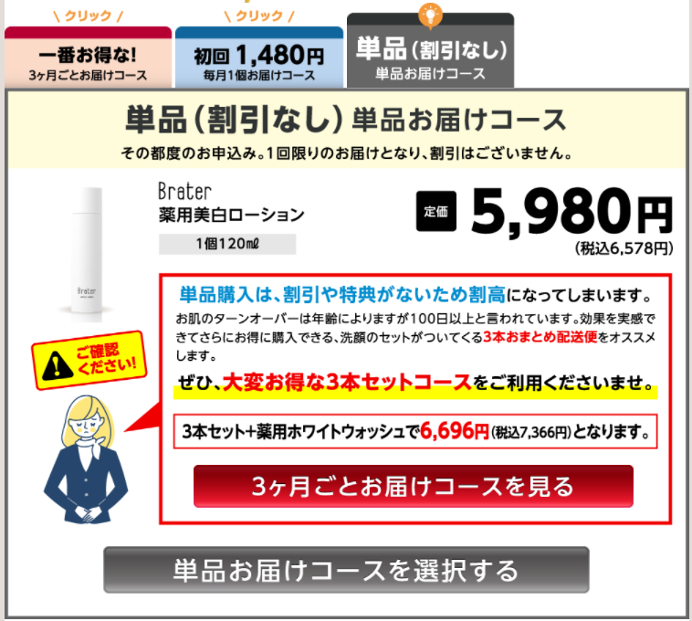 【女性用】Brater薬用美白ローションの申し込み方法は、【男性用】Brater薬用美白ローションと同じです。