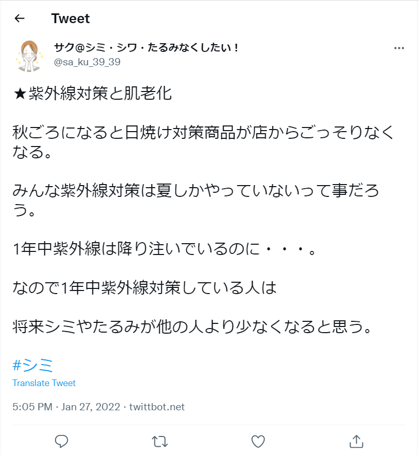 ただ、紫外線は1年中降っていますからちゃんとケアしておかないと、ダメージだ蓄積した肌になってしましますので注意が必要です。