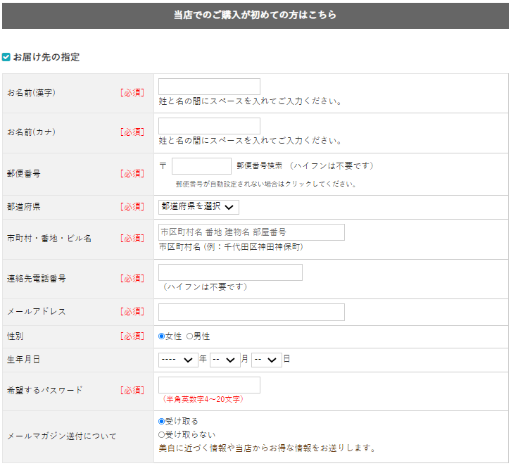 お届け先の情報を入力します。