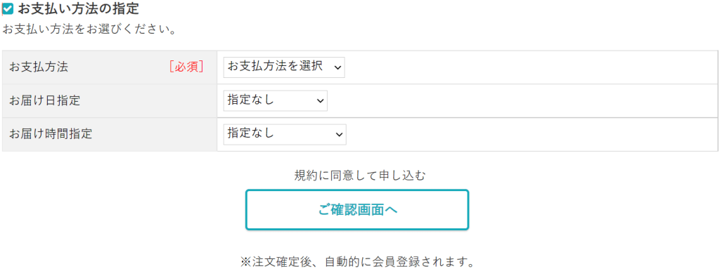 注文が確定されたら、自動的に会員登録されます。