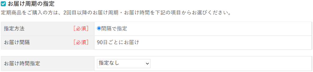 つぎに、お支払い方法とお届け周期を指定します。