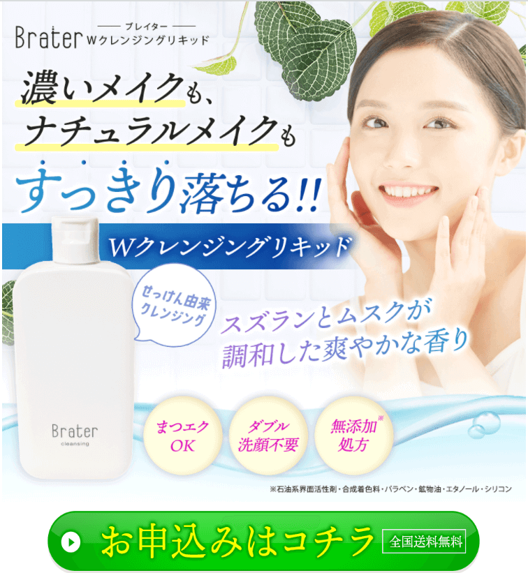 敏感肌に優しいクレンジング洗顔料| BraterWクレンジングリキッドの紹介