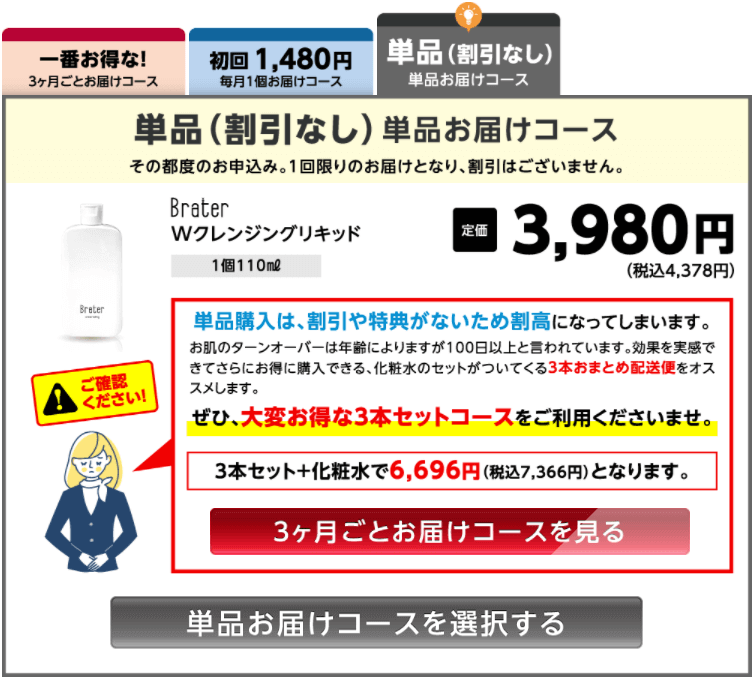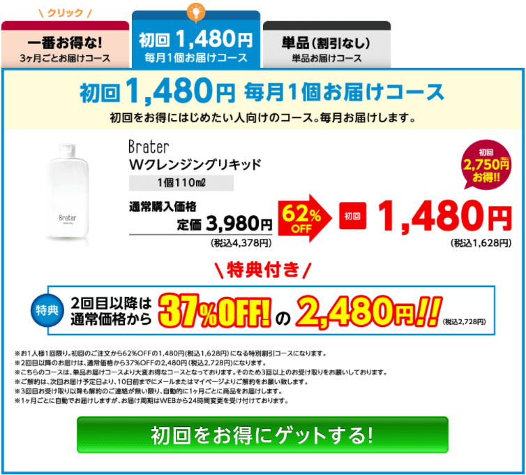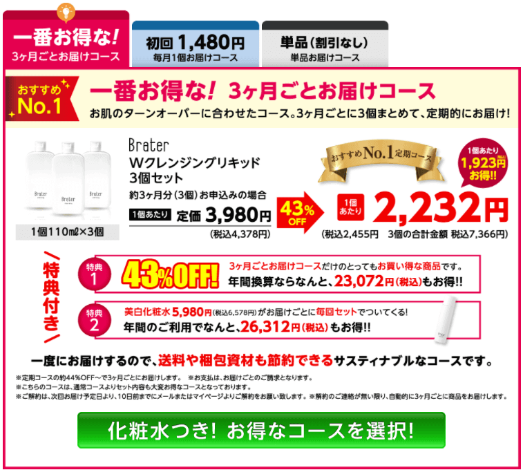 BraterWクレンジングリキッドをはじめて使うって人はこちらのコースから始めてみるのも良いですね!